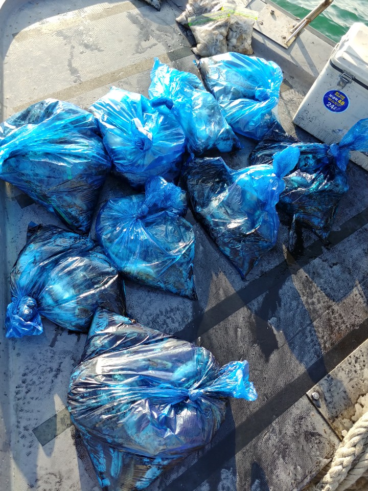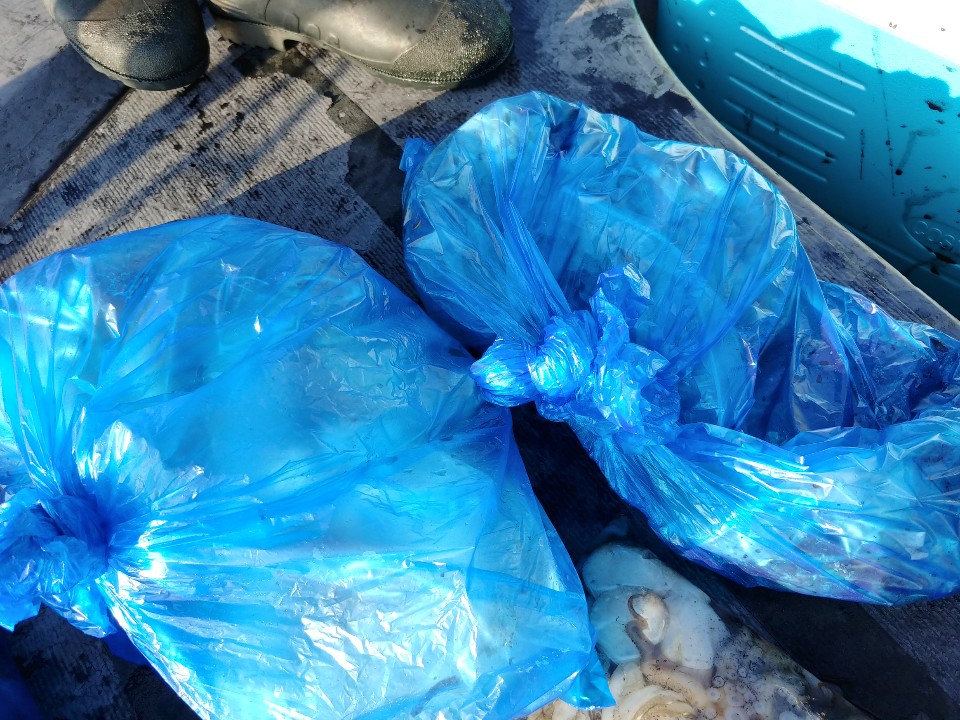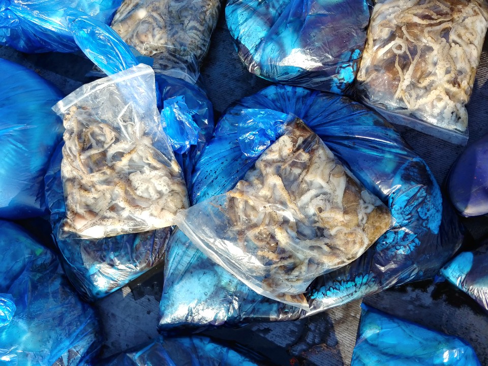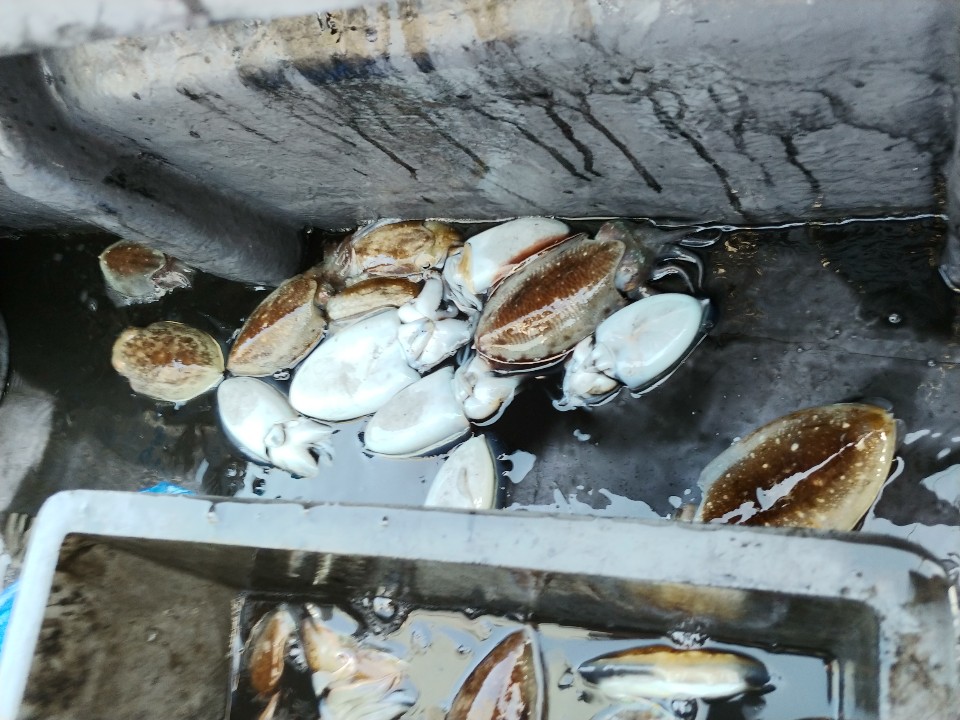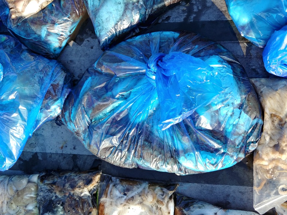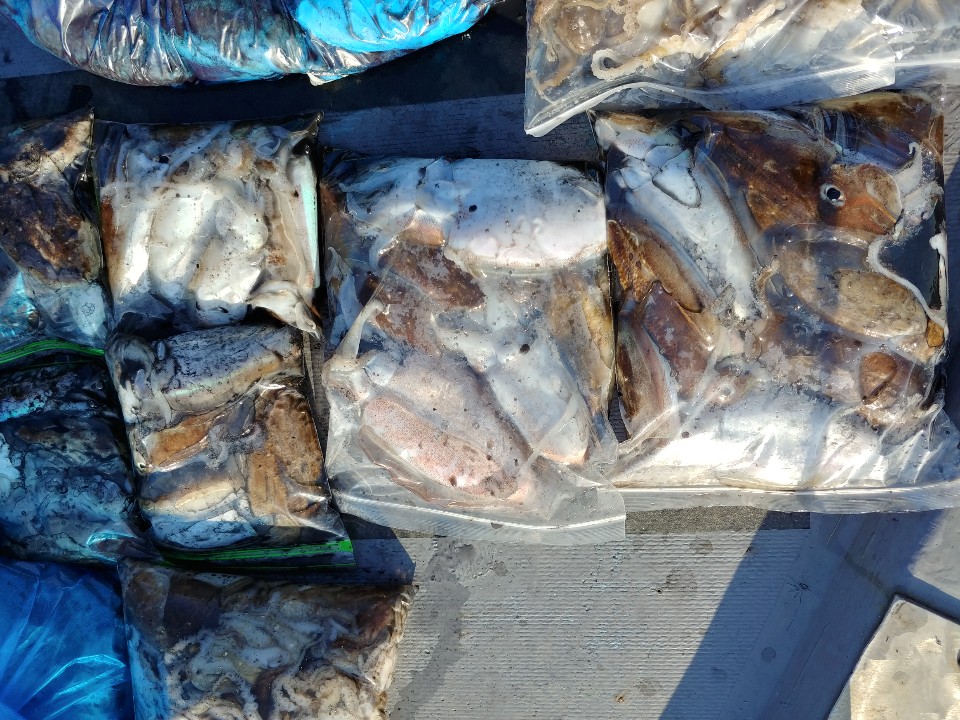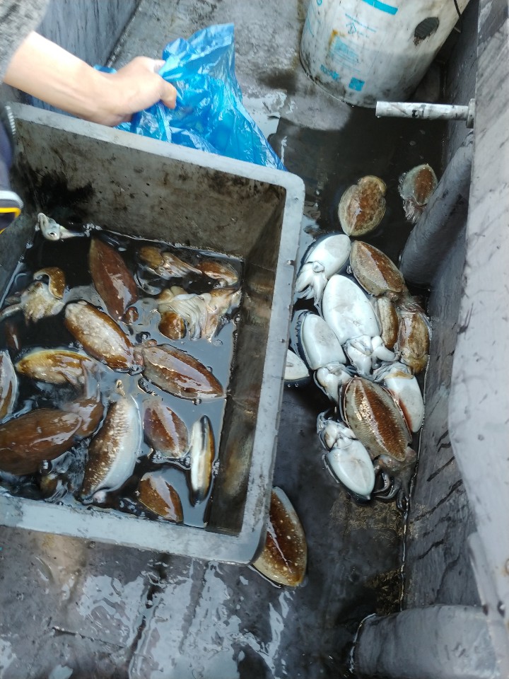 수고하셨습니다. 파란봉지는 모두 갑오징어입니다.