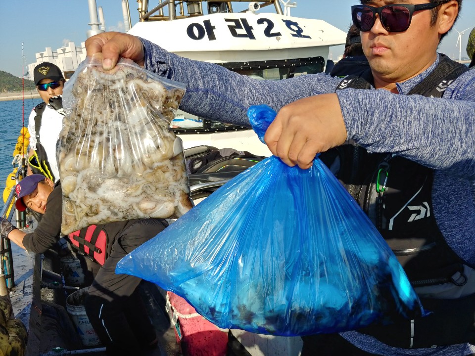 아라2호 갑이 대박입니다. 조사님들 진이 빠지게 잡았어요.