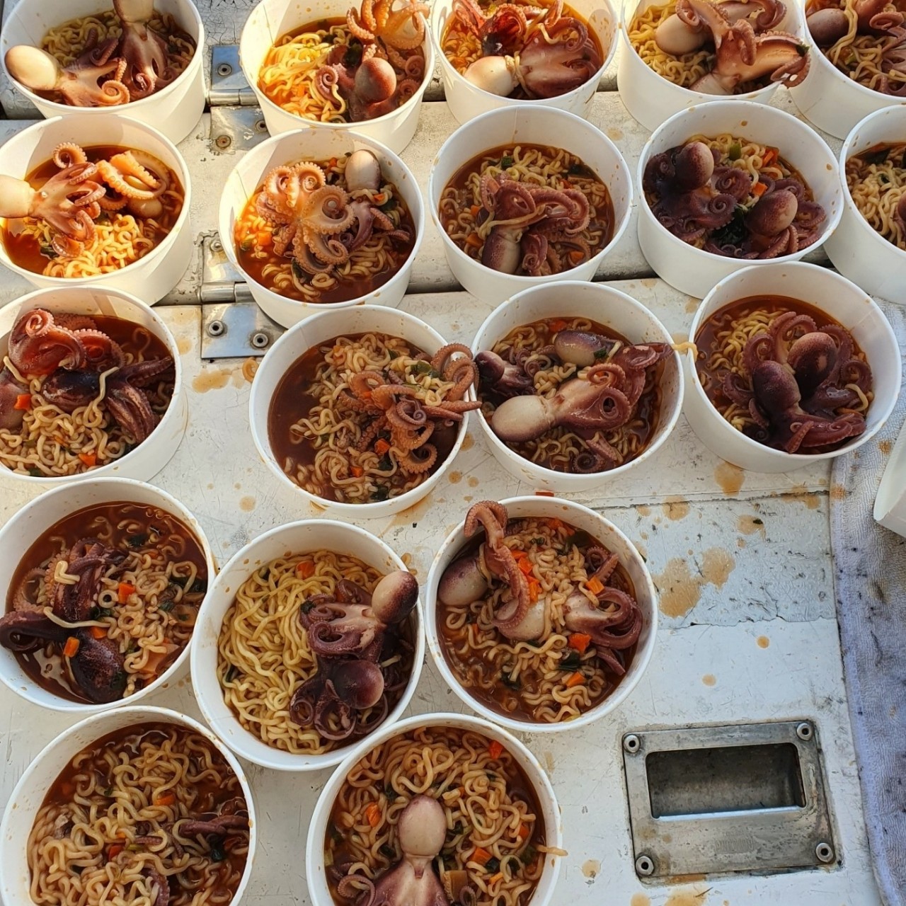 출항 전 오뎅탕서비스~ 아침간식 주꾸미라면 준비해드립니다