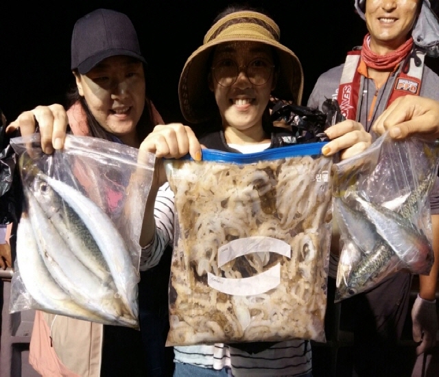 오늘 야간출조 아라호 복귀했습니다. 오늘도 어김없이 "쭈꾸미, 고등어 대박" 입니다.